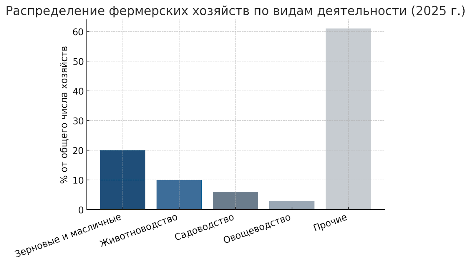 Распределение фермерских хозяйств по видам деятельности в Белгородской области (2025 г.)