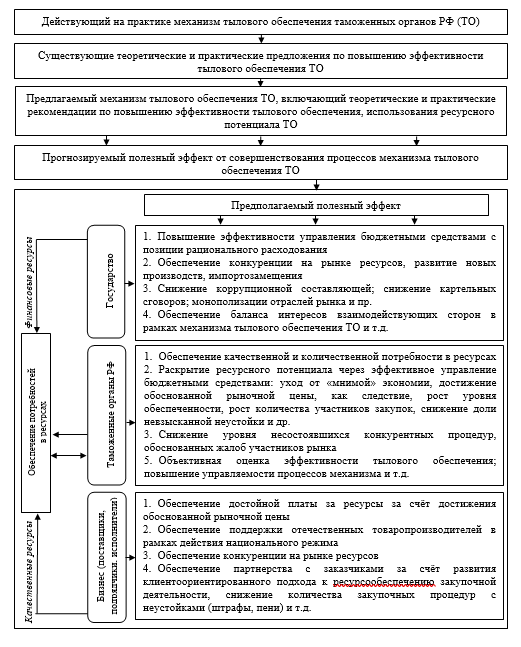 На рис. 1 обобщены и раскрыты основные полезные эффекты для обозначенных заинтересованных сторон от совершенствования процессов механизма тылового обеспечения деятельности таможенных органов РФ.