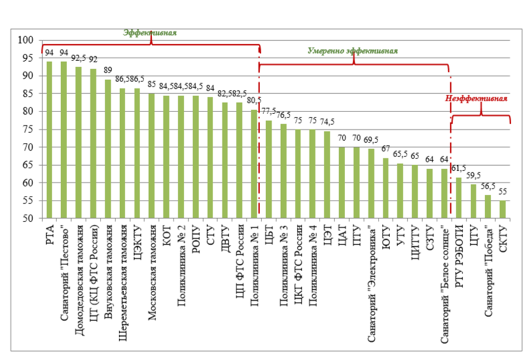 Рис. 3. Рейтинг эффективности закупочной деятельности территориальных органов и подведомственных организаций Федеральной таможенной службы