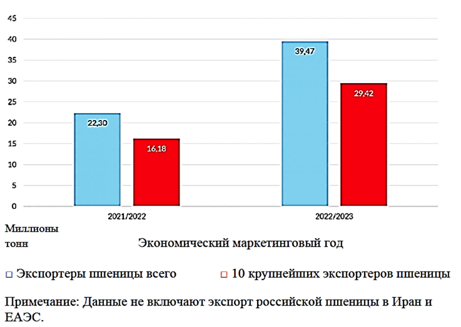 К завершению 2022‒2023 финансового года произошли существенные трансформации в структуре российского рынка экспорта, обусловленные уходом из него международных корпораций, специализирующихся на зерне. Так, «Louis Dreyfus», крупный игрок в сфере сельского хозяйства, осуществлявший экспорт российской пшеницы с 2016 года, прекратила свою деятельность в этой области в мае 2023 года. Вслед за этим, и другие крупные международные экспортеры, такие как «Cargill» и «Viterra», также отказались от участия в российском экспортном секторе.