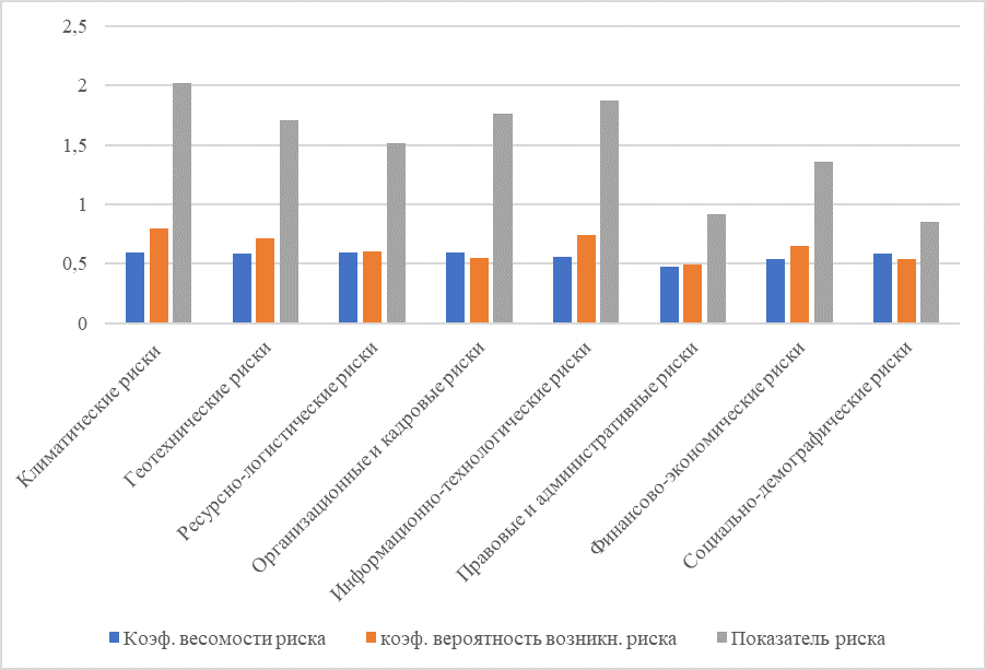 Организационно-технологические и экономические риски усиливаются дефицитом квалифицированных специалистов, недостаточной цифровой зрелостью строительных организаций и ограниченным использованием BIM-технологий. Всё это приводит к снижению предсказуемости сроков, увеличению сметной стоимости и росту вероятности технологических сбоев [7, 8].