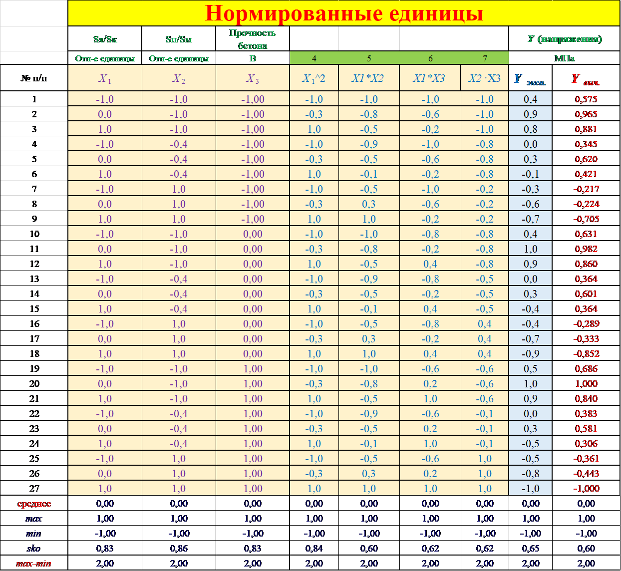 Xi max и Xi min — максимальное и минимальное значения i-го фактора в соответствии с этим, в натуральных единицах.