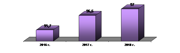 Доля прибыльных крупных и средних сельскохозяйственных организаций в Краснодарском крае в 2015 г. составила 89,8%, при этом в 25 муниципальных образованиях все сельскохозяйственные организации прибыльны. По сравнению с 2014 г. доля прибыльных сельскохозяйственных организаций в среднем по муниципальным образованиям увеличилась, рост составил 3,3 процентных пункта. По прогнозируемым значениям данного показателя наблюдается положительная динамика. Так, в 2017 году удельный вес прибыльных сельскохозяйственных организаций в общем числе по Краснодарскому краю планируется на уровне  96,6%, в 2018 г. – 97,0%. Таким образом, в 2018 г. количество прибыльных организаций увеличится на 7,2% к уровню 2015 года (рис. 5).