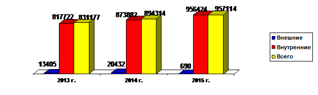 Рис. 6. Внутренние и внешние затраты на исследования и разработки в агропромышленном комплексе Краснодарского края, руб.
