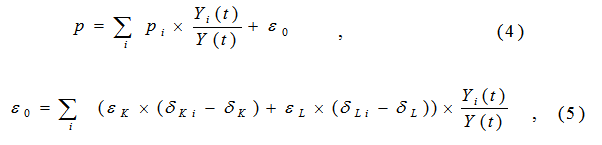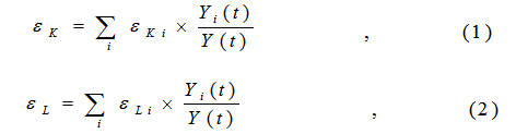 где: Y – ВВП; eK – эластичность по фондам; eL – эластичность по труду; i – индекс сектора.