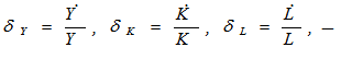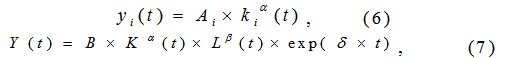 где: A, B – константы; yi(t) – производительность труда в секторе i в год t; ki(t) – фондовооруженность в секторе i год t; α, β, δ – константы.