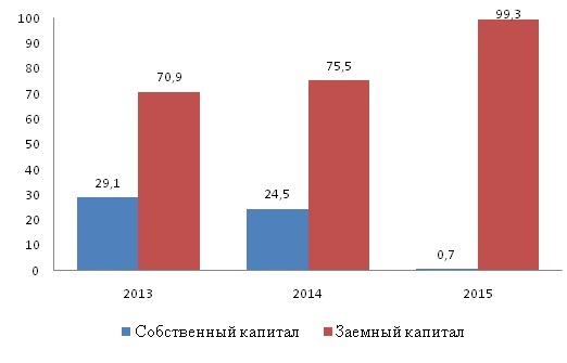 Рис.1. Структура капитала ООО «Сурский картофель» за 2013-2015 гг., %
