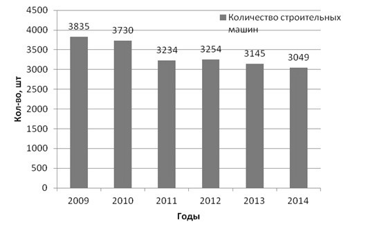 Рис. 2. Наличие основных строительных машин (экскаваторы одноковшовые) в Центральном Федеральном округе