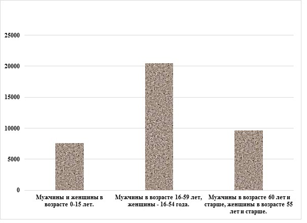 По данным Росстата численность рабочей силы (экономически активного населения) в возрасте 15-72 лет в декабре 2016 г. составила 76,9 млн.человек, или 52% от общей численности населения страны. [1] Распределение численности населения Российской Федерации по полу и возрастным группам представлено на рисунке 1.