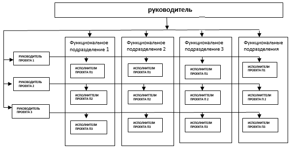 Функционально-матричная организация управления в меньшей степени влияет на существующую линейную систему организации, чем проектно-матричная. Ответственность существующих линейных отделов нарушается не очень сильно. Руководители проектов могут отбираться из более широкого круга лиц. Функциональные отделы продолжают выполнять свои специализированные технические функции, а руководитель проекта обеспечивает административное руководство. Напротив, при проектно-матричной организации управления значительная часть технических функций передается из линейных отделов руководителю проекта.