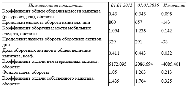 Коэффициент общей оборачиваемости капитала показывает эффективность использования имущества, отражает скорость оборота всего капитала организации. Ускорение оборачиваемости совокупного капитала произошло как за счет изменения структуры капитала (увеличения доли оборотного капитала в общей его сумме), так и за счет ускорения оборачиваемости последнего. При этом продолжительность нахождения капитала в активах организации сократилась на 143 и составила 657 дн.