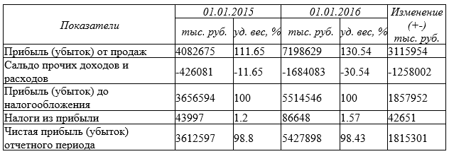 Чистая прибыль организации за 2015 год составила 5 427 898 тыс. руб.