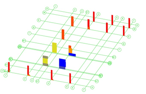 На рисунке 5 представлено распределение армирования для колонн. Максимальное различие армирования составляет 38%.