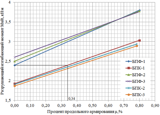Рис.1. Графики зависимости изгибающего момента от процента продольного армирования