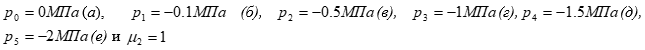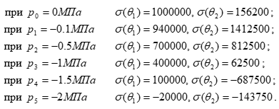 , а также при первых трех значениях давления во всех точках контура действуют сжимающие напряжения.