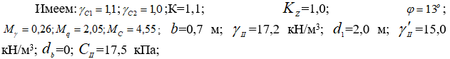 -коэффициент надежности определения физико-механических характеристик грунтов основания;