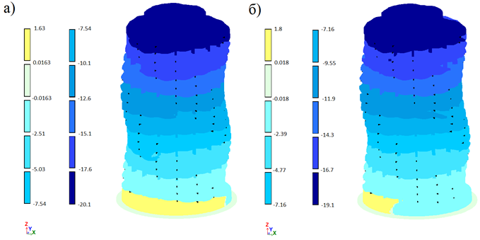 Рис. 8. Перемещения от расчетной ветровой нагрузки:
