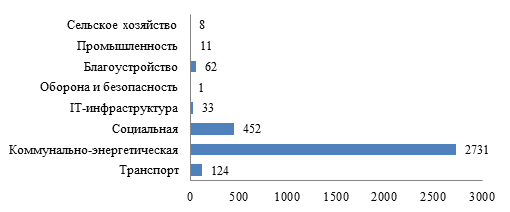 Рис. 5. Отраслевая специфика проектов ГЧП в России по количеству на конец 2018 г. [1]