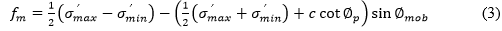 Мобилизованный угол дилатации определяется функцией от мобилизованного угла трения