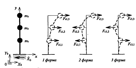 Для вычисления системы сил при выполнении анализа сейсмостойкости системы мультимодальным нелиненйым статическим методом исходными данными являются инерционные силы первых трех форм колебаний. Характеристики системы приняты в соответствии с таблицей 1.