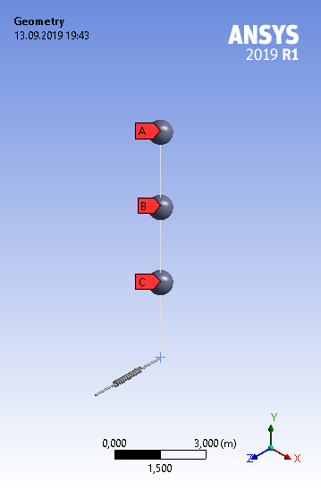 В качестве расчетной динамической модели принят вертикальный стержень с тремя равномерно распределенными по высоте сосредоточенными массами. Для каждой из акселерограмм подобрано значение сосредоточенной массы так, чтобы отклик системы на сейсмическое воздействие происходил в заупругой стадии. В основании системы замоделирована эластомерная линейная опора (рисунок 6).