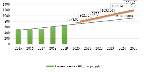 Рис. 5. Прогнозируемые значения перечислений доходов в ФБ России, администрируемых СЗТУ