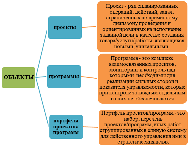 На рисунке 1 представлено объектное поле проектного менеджмента и соответствующие характерные черты каждого из объектов.