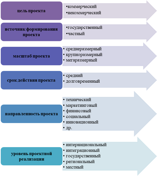 В теоретико-методологических трудах приводится широкий перечень проектных классификационных групп, систематизированных по какому-либо критерию. Рассмотрим наиболее крупные, распространенные и практически известные из них (рисунок 2).