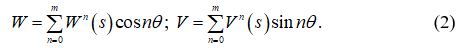 Figures 2-3 show the graphs of changes in the components of the load W(θ) and V(θ) and their approximation using series (2) with a different number of terms. The calculations were performed at γ = 26.5 kN/m3, φ = 220, R = 3 m, H = 2 m.