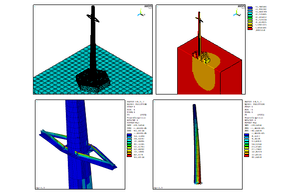 Рисунок 4. Оценка НДС системы «опора-фундамент-грунт» тип ОП-1
