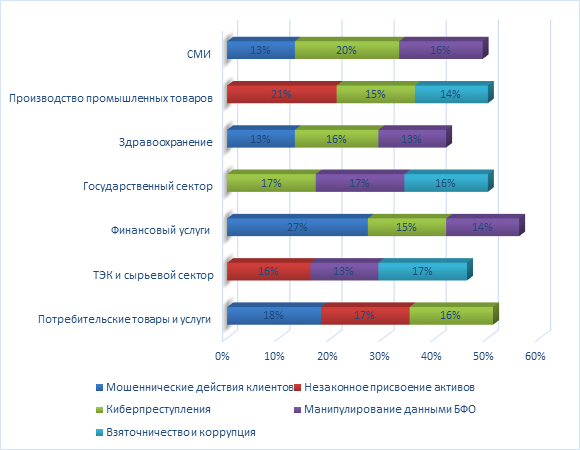 Рисунок 4 – Наиболее распространенные экономических преступлений по видам деятельности организаций