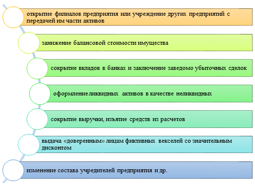 На рисунке 8 перечислены некоторые признаки, указывающие на совершение криминальных банкротств