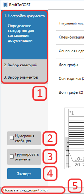 - Опция группировки элементов по категориям – элементы будут сгруппированы как в экспортируемой спецификации, в соответствии с ГОСТ, так и в окне выбора элементов на вкладке "3. Выбор элементов".