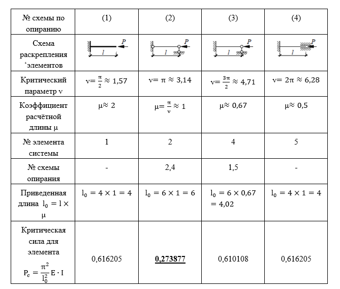 Примечание: Во всех указанных элементах критические силы меньше вычисленных ранее НДС (P<Pc), что указывает на то, что анализируемая на рис. 1 система находится в состоянии устойчивого равновесия