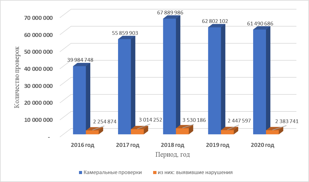 Рисунок 2 – Проведение камеральных проверок по России за 2016-2020 гг.