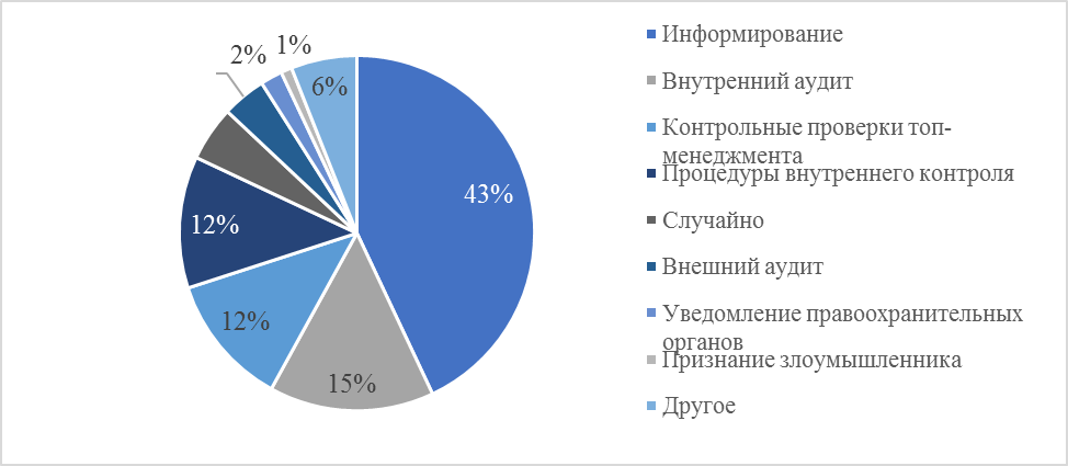 Рисунок 1 – Способы выявления фактов корпоративного мошенничества в мире