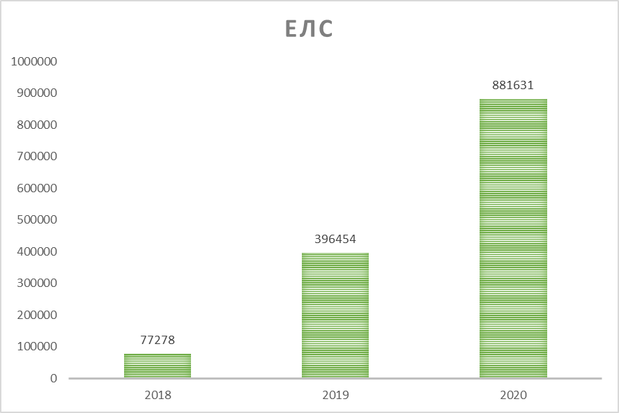По состоянию на 31 декабря 2020 года в ресурсе единого лицевого счета открыто 881 631 лицевых счетов плательщиков таможенных пошлин, налогов, что в 2.2 раза больше чем в 2019 году - 396 454 единиц.
