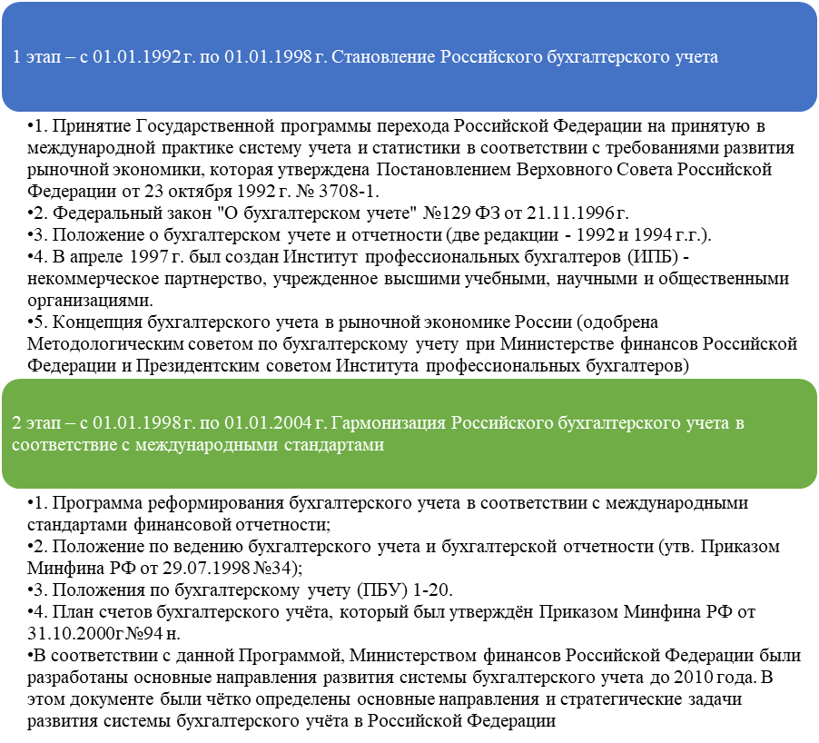 Рисунок 1 – Этапы развития бухгалтерского учета в российской Федерации