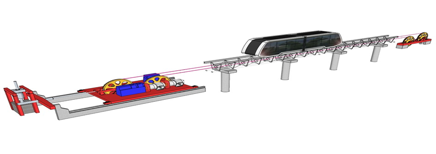 автоматизированную канатную рельсовую дорогу  по аналогии с автоматизированной канатной рельсовой дорогой (пиплмувер) серии Cable Liner производства Doppelmayr Cable Car, применяемой для перевозки пассажиров между терминалами в аэропорту Шереметьево (Рис. 1);
