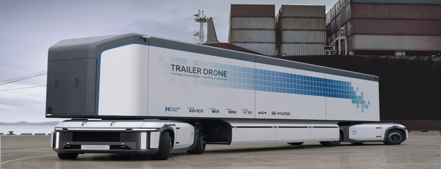 Использование беспилотных тележек предлагает  Hyundai. Так в рамках форума Hydrogen Wave компания Hyundai представила свою роботизированную концепцию Trailer Drone (Рис.4). Это полностью автономный прицеп, который может использоваться для транспортировки различных грузов без участия человека [16].