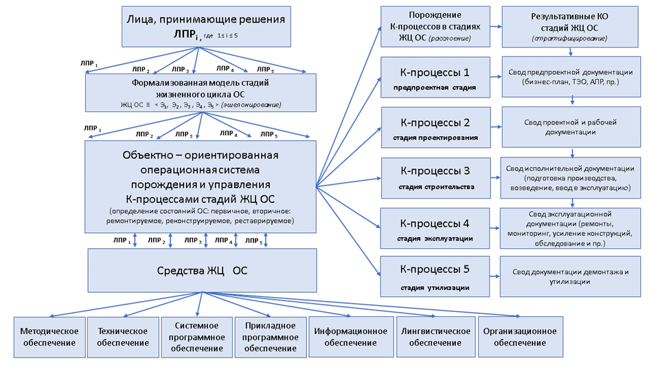Процедура стратифицирования связана с многосторонней деятельностью {ЛПРikj}, которые обеспечиваются соответствующими предметными сферами ЖЦ ОС: территориальное планирование, архитектура, строительные конструкции, инженерное оборудование и сети, стоимость, технологии и организация строительства, эксплуатация, ремонты, реконструкция, демонтаж, снос ОС и рекультивация пятна застройки. Стратифицирование многосторонней деятельности ЛПРiкj отражается в содержании средств видов обеспечений: методических, системных, технических, программных, информационных, лингвистических, организационных, ‑ для автоматизированных технологий ЖЦ ОС.
