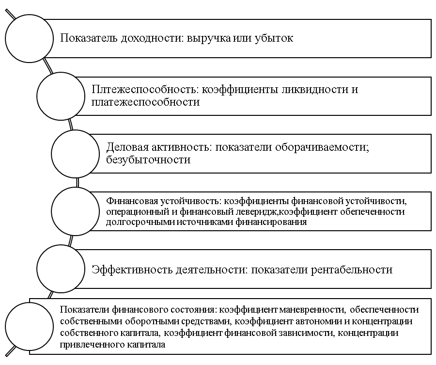 Посредством анализа предоставляется достоверная, адекватная и оперативная информация, используемая при принятии бизнес решений, стратегии развития, взаимодействия с контрагентами и инвесторами и т.д. Анализ позволяет получить данные по экономическому субъекту в частности об уровне платежеспособности, деловой активности, конкурентных преимуществах, эффективности деятельности через комплексную систему экономических показателей. Основные показатели, используемые в комплексном анализе финансово-хозяйственной деятельности экономического субъекта, представлены на рисунке 1. По результатам анализа формируется мнение об уровне финансового состояния экономического субъекта.
