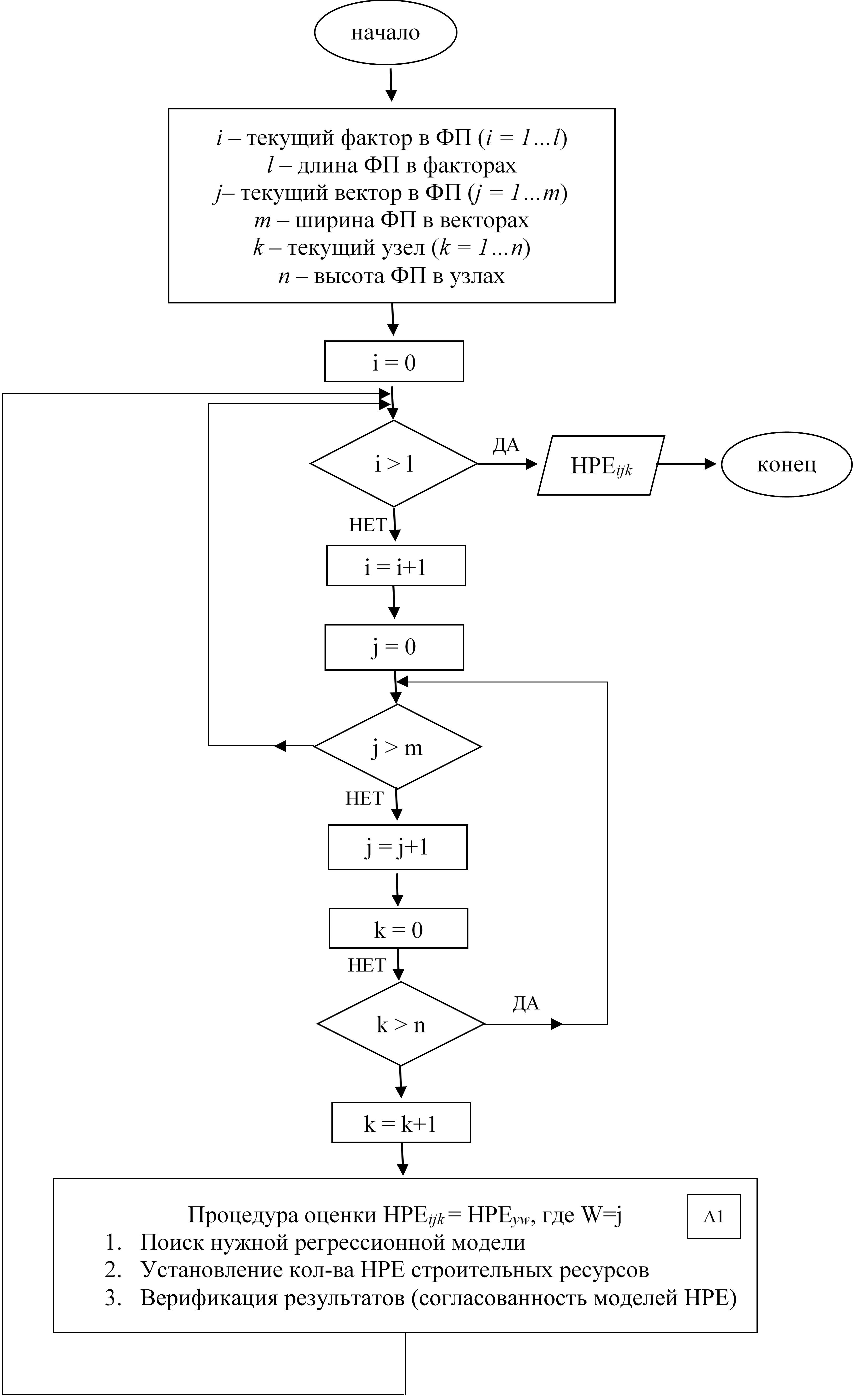 Процедура оценки натуральной ресурсоемкости (НРЕijk) включает в себя поиск нужной регрессионной модели (РМ), установление количественного значения ресурсоемкости отдельных показателей и верификацию полученных результатов путем оценки согласованности моделей НРЕijk (рисунок 4).
