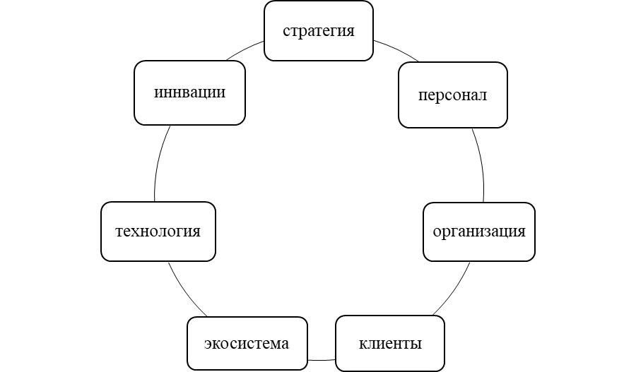 Важнейшую роль в цифровой трансформации играет организационная структура, поддерживающая цифровую культуру. Согласно определению KMDA, «цифровая культура – набор принципов и компетенций, характеризующих преимущественное использование информационно-коммуникационных цифровых технологий для взаимодействия с обществом и решения задач в профессиональной деятельности» [16].