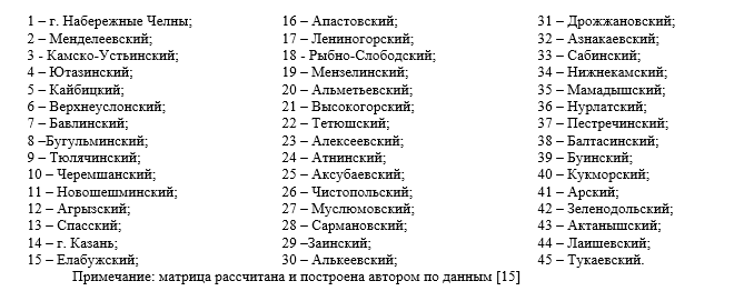 Оценка выполнена не только для муниципальных районов, но и двух городских округов – г. Набережные Челны и г. Казань, что объясняется регистрацией наиболее крупных сельскохозяйственных организаций региона по выручке в этих городах Реальное производство сельскохозяйственной продукции размещено на сельских территориях республики, а налоговые поступления поступают в бюджет городов по месту регистрации.