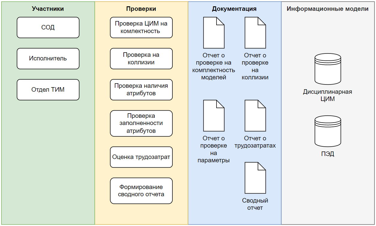 В процессе анализа цифровых информационных моделей каждая модель передается между участниками строительного производства, проходит проверки, в результате которых формируется отчетная документация. (Рис. 2).