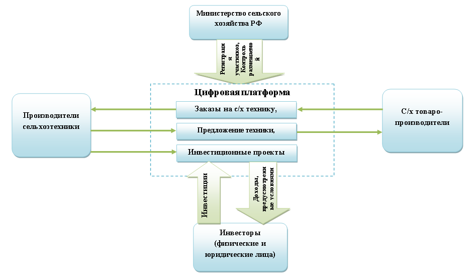3) Производители сельхозтехники – российские организации или индивидуальные предприниматели, реагирующие на заявки производителей продукции предложениями. Кроме того, данные субъекты будут иметь право выставлять на цифровой платформе свои инвестиционные проекты, связанные с созданием новых видов техники, или с модернизацией производства.