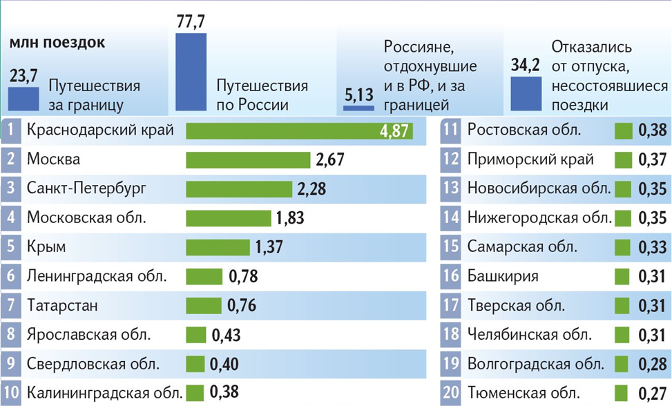 Наиболее популярными направлениями традиционно были Краснодарский край, г. Москва и Московская область, г. Санкт-Петербург и Ленинградская область, а также Крым. Однако, другие регионы продемонстрировали существенные результаты, которые свидетельствуют о высоком потенциале развития внутреннего туризма. Цифровизация экономики и сферы туристических услуг в частности имеют значительный потенциал для продвижения внутреннего туризма в нашей стране.