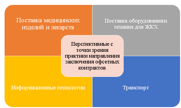 Практика заключения офсетных контрактов с токи зрения регионального развития позволяет сделать вывод о том, что наиболее перспективными сферами заключения офсетных контрактов на сегодняшний день являются следующие (рис. 2.):