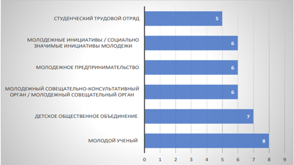 В ФЗ № 489 закреплены 9 основных понятий, к числу которых относятся «молодежь, молодые граждане», «молодая семья», «молодежное общественное объединение», «молодежная политика», «специалист по работе с молодежью» и др. [8]. В большинстве региональных законов основные понятия, используемые в законе субъекта РФ, приведены в соответствие с этим законом. Однако в отдельных нормативно-правовых актах используется иная терминология, не включенная в ФЗ № 489. В этих документах используются следующие основные понятия: государственная молодежная политика; стратегия государственной молодежной политики; дети, молодые граждане, оказавшиеся в трудной жизненной ситуации; уполномоченный орган исполнительной власти; государственная поддержка молодежных (и детских) общественных объединений; молодежные коммерческие организации; молодежное самоуправление; студенческое (ученическое) самоуправление; органы представительства молодежи края; молодежный совещательно-консультативный орган / молодежный совещательный орган; молодежные общественные совещательные структуры; молодежные парламентские и правительственные структуры; молодежное правительство; молодежный парламент; талантливая (одаренная) молодежь / молодежь, проявившая одаренность; молодой предприниматель; молодежное предпринимательство и др.